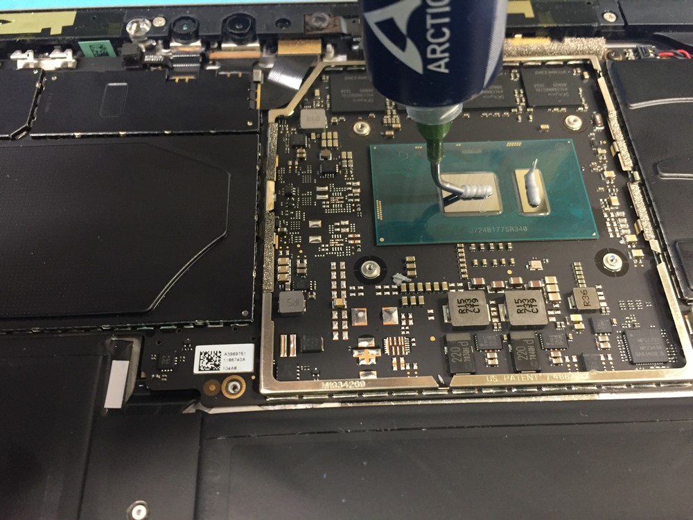 Naprawa płyty głównej przebiegła sprawnie, tak jak odklejenie i ponowne wklejenie ekranu. Przy okazji naprawy wyczyściliśmy również układ chłodzenia z kurzu i wymieniliśmy pastę na procesorze.